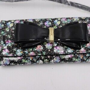 Betsey Johnson Rhinestone Print Mini Crossbody Envelope Bag Gold Chain Strap