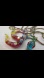 Betsey Johnson Rio Double Chain Snake Necklace, Betsey Johnson Heart Logo Hang Tag, Colorful Lucite Embellished with Crystals, the smaller chain has blue rhinestones, Pre owned in good condition with no missing stones
