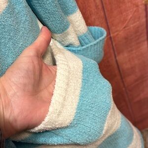 Get ready for cozy! Once you put on this snuggly plush robe from Betsey Johnson you'll never want to take it off! You won't believe how soft it is! Blue and white striped with a red heart on the back, this robe is perfect for lounging or staying nice and toasty on cool nights. Great Valentine’s gift! 100% Polyester. EUC