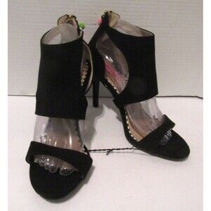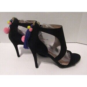 Betsey Johnson Ryan Heels Black Suede Pom Pom Stilettos Shoes NWOB Size 8.5