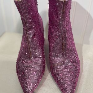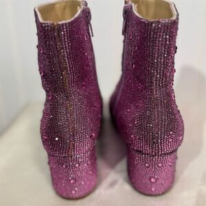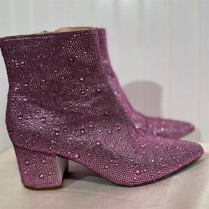 Betsey Johnson SB-Kyla Pink Rhinestone Ankle Boots Size 6M Sparkle Party Glam
