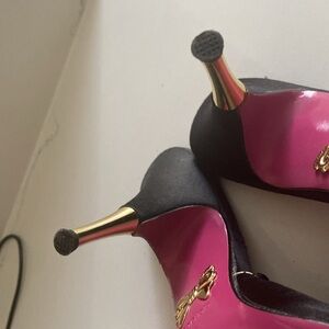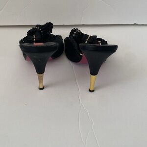 Betsey Johnson Satin Black Peep Toe Mules Heels size 7 M