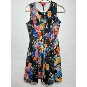 Betsey Johnson Scuba Fit and Flare Dress Floral Maximalist Black size 2 Small
