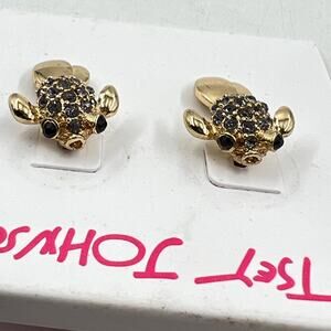 Betsey Johnson Sea Turtle Earrings Gold Tone Gray and Black Rhinestones