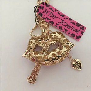 Betsey Johnson Sexy Pink LIPS Cool Cig Hang Crystal Rhinestone Pendant Necklace
