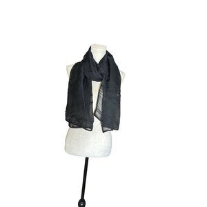 Betsey Johnson Sheer Black Lightweight Designer Wrap Scarf Delicate Crochet Trim