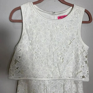 Betsey Johnson Shift Dress Soft White Lace Full Skirt Knee Length Size 6