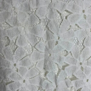 Top layers are soft/winter white floral lace and the lining is solid soft white 100% polyester.