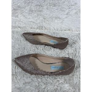 Betsey Johnson Shoes Womens Size 6.5 Glitter Scalloped Flats Rose Gold Sparkle