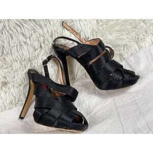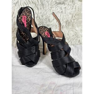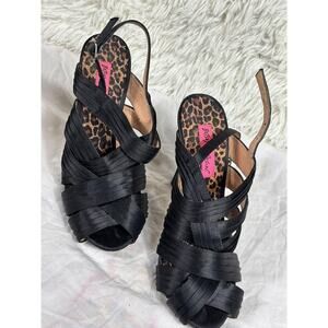 Betsey Johnson Shoes Womens Size 7 Black Strappy Platform Slingback Dress Heels
