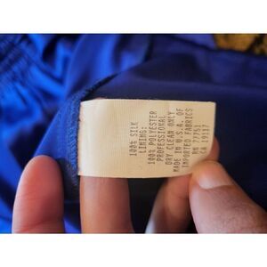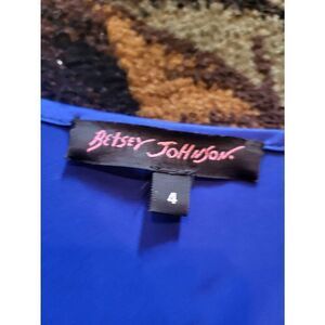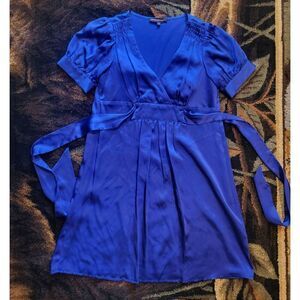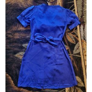 Betsey Johnson Silk Dress Women's 4 Blue Satin Puff Sleeve Mini Sash USA Made