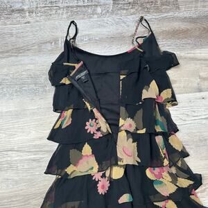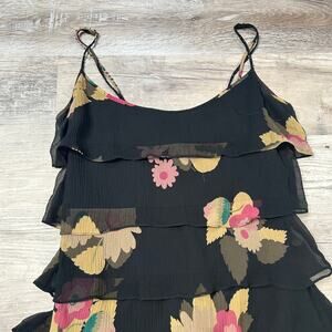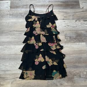 Betsey Johnson Silk Floral Ruffle Slip Dress 6 Black Tiered Boho Fairycore