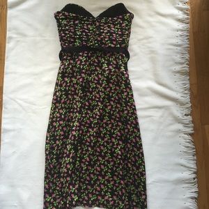 Beautiful Betsey Johnson strapless dress, sweetheart style, in Rose pattern...100% silk. In excellent condition!