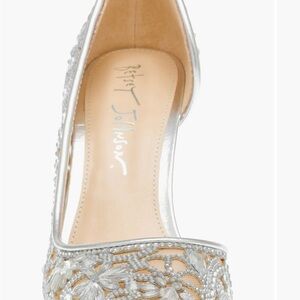 Betsey Johnson Silver CRYSTAL Floral Embellished Heels WEDDING HOLIDAY