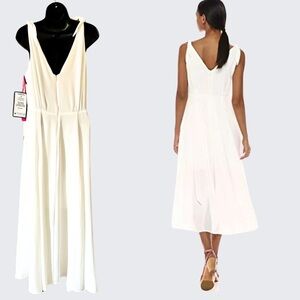 Betsey Johnson [Size 12 - NWT] White Pebble Crepe Shoulder Tie Midi Dress