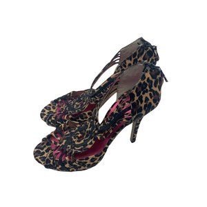 Betsey Johnson Size 9 M Animal Print High Heels, Back Zip, Brown