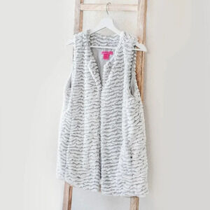 Betsey Johnson Size M/L White Gray Faux Fur Vest with Satin Lining