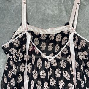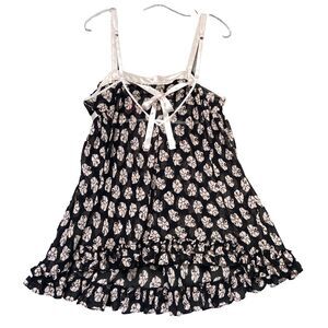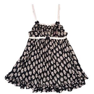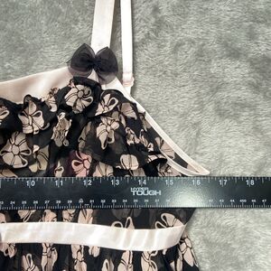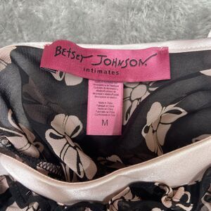 Betsey Johnson Slip Dress Women’s M Pink Bow Floral Babydoll Intimates Sheer Y2K