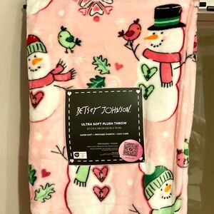 Betsey Johnson 🎁Snowman Snowflake Christmas Holiday Blanket NWT🎁Gift Ready