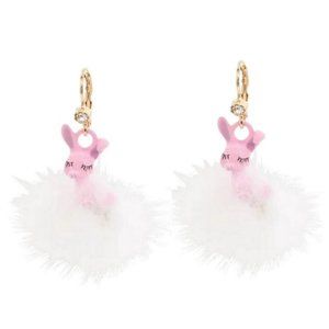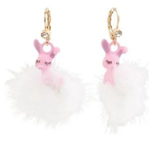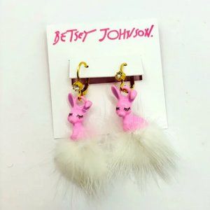 Adorable Betsey Johnson earrings featuring pink bunny designs with fluffy white FAUX FUR accents.