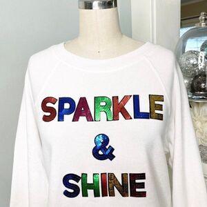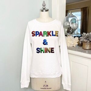 Betsey Johnson Sparkle and Shine Sequin White Sweatshirt Casual Lounge Preppy Fun Bling