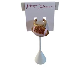 Betsey Johnson Sparkly Pave Crystal Football Cocktail Ring w/ Stretch Band.