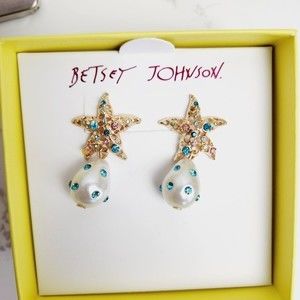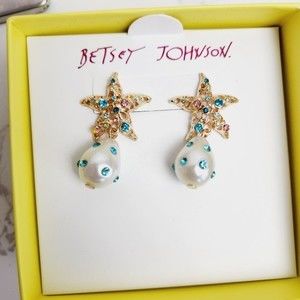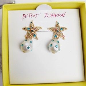 Betsey Johnson Starfish Gold Pearl and Blue Drop Earrings
