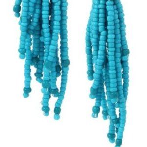 Necklace-Betsy Johnson Tassel Necklace Blue and gold Betsey Johnson beaded tassel necklace with blue rhinestone starfish slider. Rope chain.