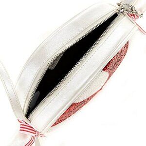Get ready to shine this holiday season with our Starlight, Starbright crossbody bag. Shaped like your favorite festive peppermint candy, this playful bag sparkles with glitter accents and charming bow details. The convenient crossbody strap keeps your hands free for celebrating in style. Perfect for adding a sweet touch to any holiday outfit! Item ships brand new in sealed package with tag and gifts.