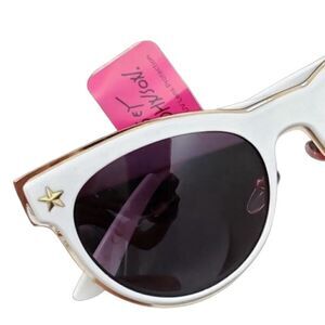 Betsey Johnson Statement Round WHITE on GOLD Small Gold Stars NWT.
