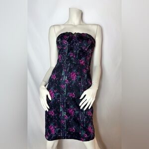 Betsey Johnson Strapless Dress Lace Black and Purple Rose Floral Size 2