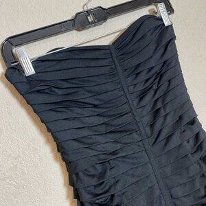Betsey Johnson Strapless Mini Bodycon Dress Womens 2 Black Ruched Cocktail Y2K 90s