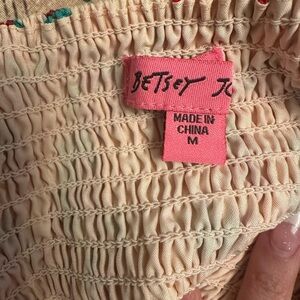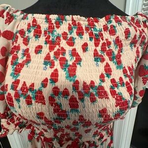 If summer was a dress, this would be it. This Betsey Johnson beauty brings all the sweet, soft, vintage vibes with none of the effort. Stretchy smocked top? Check. Ruffle-trim puff sleeves? Check. Strawberries absolutely everywhere? Triple check.