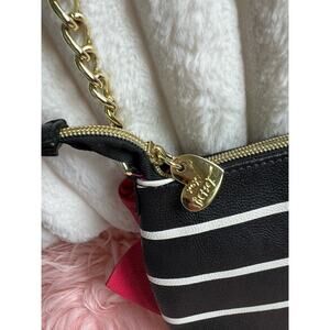 Betsey Johnson Striped Crossbody with Red Bow & Chain Strap