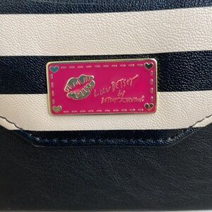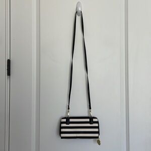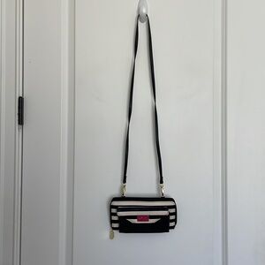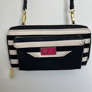 Betsey Johnson Striped Full Zipper Wristlet Crossbody Bag Small Black/Ivory