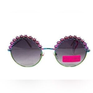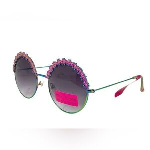 Betsey Johnson Sunglasses with Purple and Green Metallic Floral Design NWT