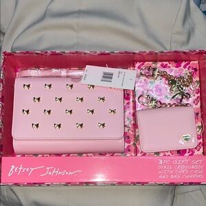 This Betsey Johnson crossbody bag in a delightful pink hue features elegant floral detailing, making it a standout accessory. Its compact design is perfect for carrying essentials while adding a touch of charm to any outfit. The metallic accents enhance its stylish appeal, making it a must-have for fashion enthusiasts.