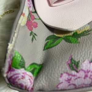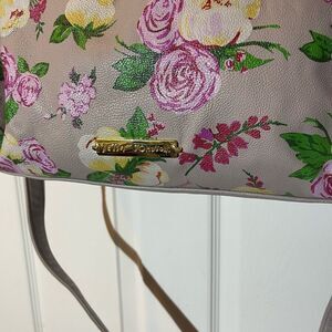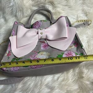 Betsey Johnson Synthetic Satchel/shoulder bag Floral&Pearl large pink bow accent.top zipper compartment, a middle zipper compartment a side zipper and two side pockets. Pre owned in good used condition small peelings on the bottom corners of the bag. See all pi any questions please message