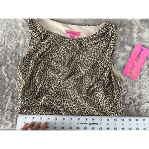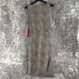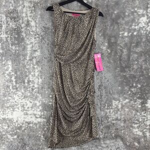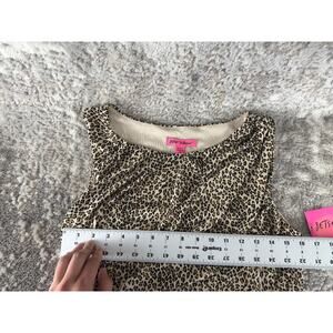 Betsey Johnson Sz 12 Leopard Animal Print Ruched Midi Dress Cheetah Bodycon NWT