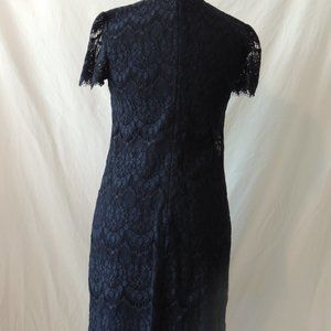 Betsey Johnson Sz 6 Dress Lace Navy Blue Scalloped Hem Lined Graduation Wedding