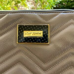 Betsey Johnson Taupe Quilted Clutch Purse Cosmetic Bag NEW NWOT Black