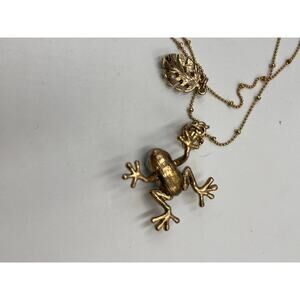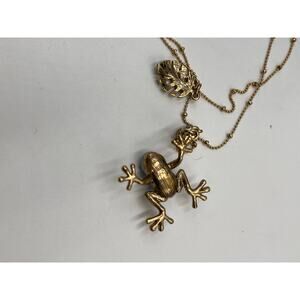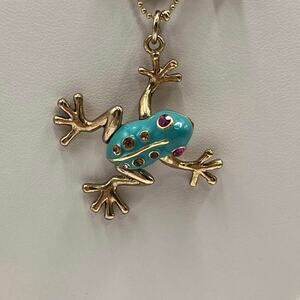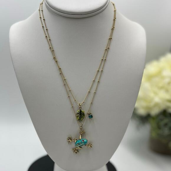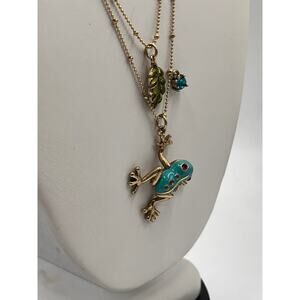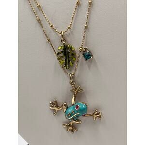 Betsey Johnson Teal & Gold Frog Pendant Necklace Two-Row Necklace goldtone tree