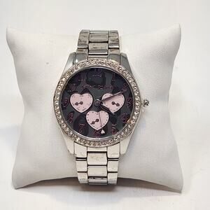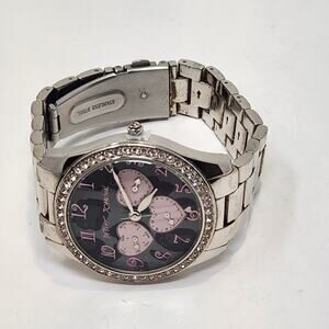 Betsey Johnson Three Hearts Crystal Love Wristwatch Watch Multi Dial Silver Tone