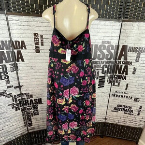 Betsey Johnson Torrid Plus 5 Black Floral Mesh Lined Lace V-Neck Midi Slip Dress