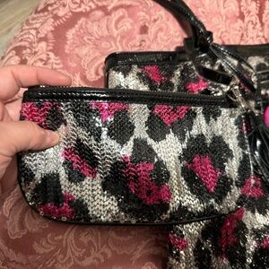 Betsey Johnson Tote Bag Sequin Leopard Cheetah Pink Silver Black Animal Print