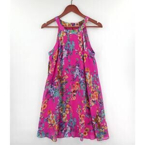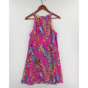 Betsey Johnson Trapeze Dress Medium Pink Floral Chiffon Mod 60s Revival