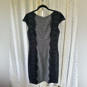 Betsey Johnson Tweed Lace Overlay Mixed Print Cap Sleeve Sheath Dress Edgy 8