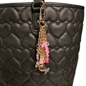 Choose from three unique handbag charms made from a Betsey Johnson belt.