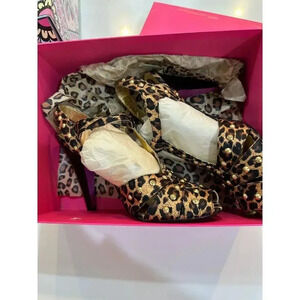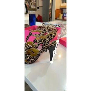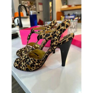 Betsey Johnson Vero Cudio Women's Black Animal Print Gold Studded Heel Size 8.5