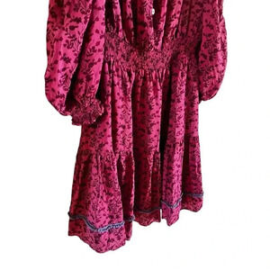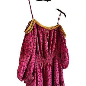Betsey Johnson Vines of Bali Ibis Rose Pink Mini Dress Boho Pompoms Size Medium